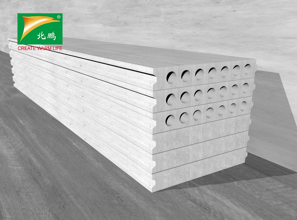 北鵬?牌增強發(fā)泡混凝土條板是以硅酸鹽水泥,摻加增強劑、增韌劑、穩(wěn)定劑等原材料,采用物理機械合成+化學的發(fā)泡法工藝、設備經攪拌發(fā)泡、免振搗注漿,再經由水熱速凝模具、抽孔成型,蒸汽養(yǎng)護而成的裝配式內隔墻板預制板。