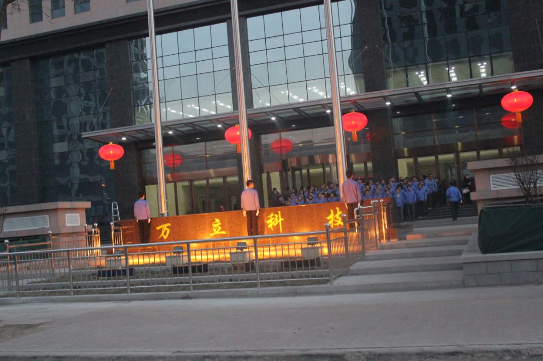2017年12月29日,伴隨著即將到來的歲末鐘聲,狗年踏著輕盈的腳步向我們翩翩走來,在這辭舊迎新之際,山西萬立科技有限公司全體員工列隊(duì)在新建成的萬立科技25層研發(fā)項(xiàng)目大樓前廣場(chǎng)進(jìn)行了新年升旗儀式。
